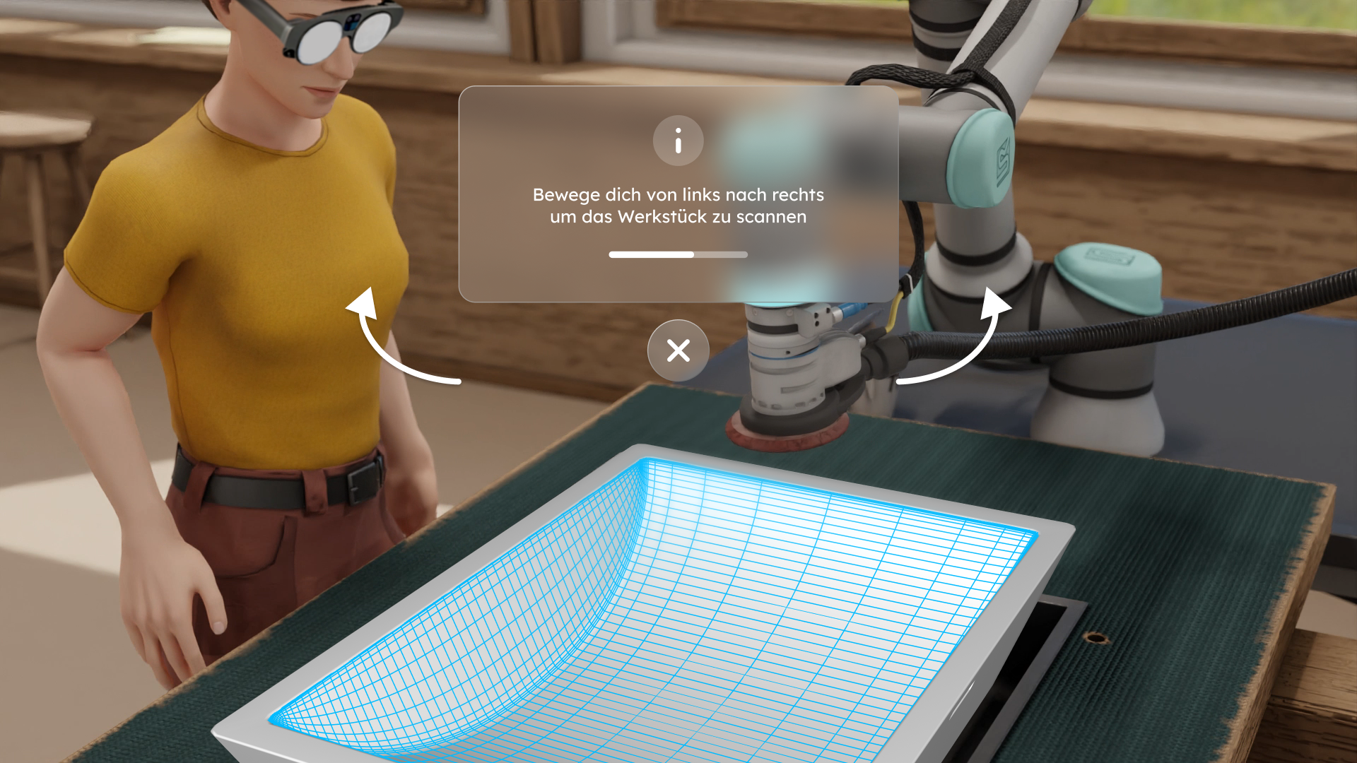 The main focus lies on the intuitive teaching interaction in the robotic sanding process, and on quality control during operation. Initial scenarios and interaction concepts are tested on simulations to identify technical requirements and to define relevant interaction and design parameters.