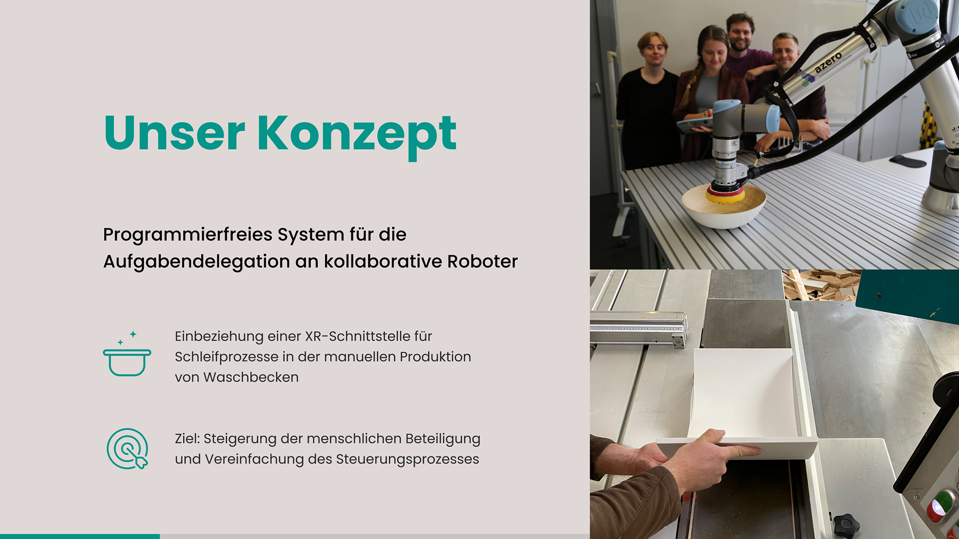In the research project “Cobots for my Craft”, conducted within the framework of the AI Production Network (KI-Produktionsnetzwerk), the Faculties of Design and Electrical Engineering at Augsburg University of Applied Sciences we have jointly developed a use case for a collaborative sanding robot (cobot).