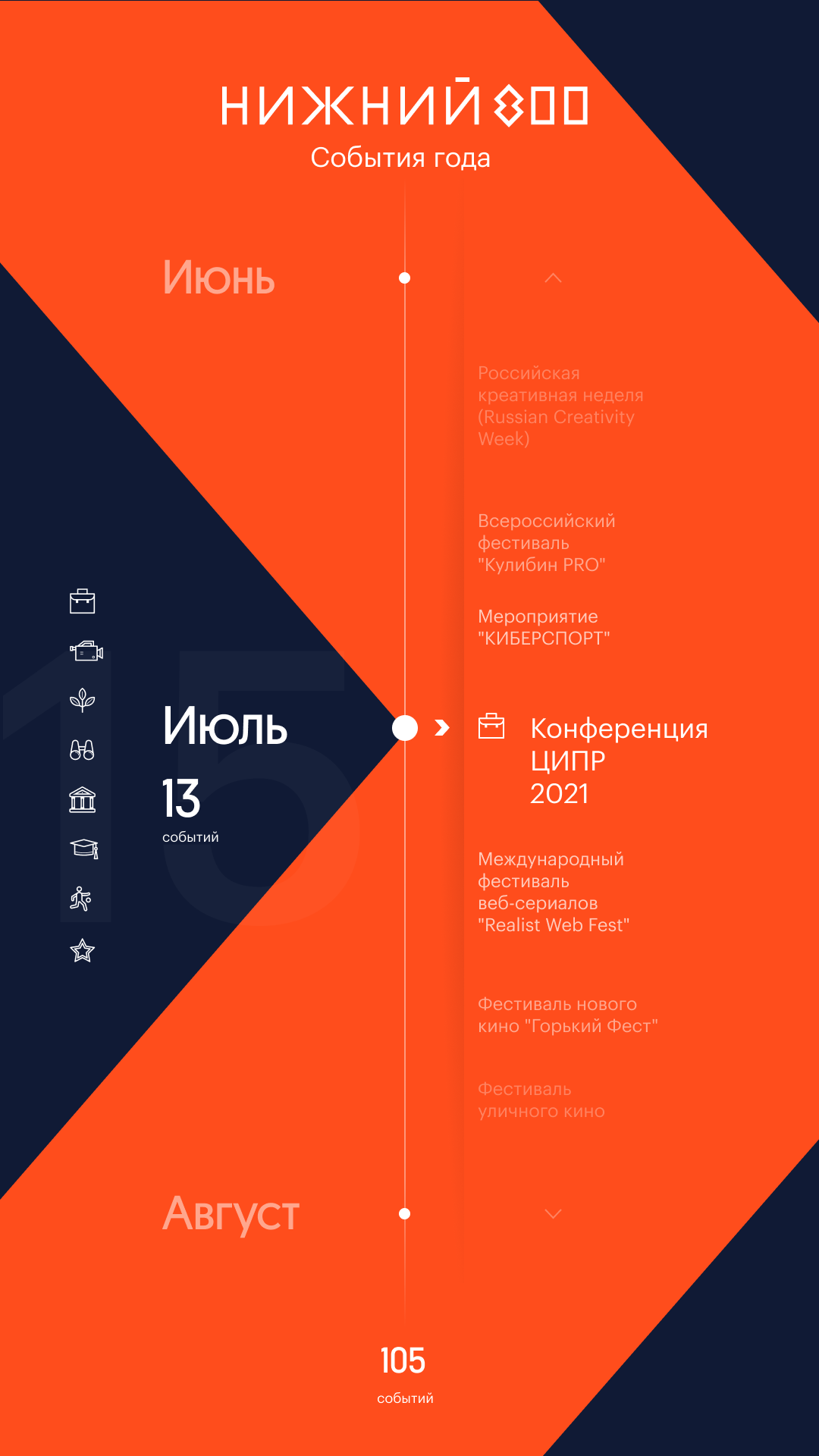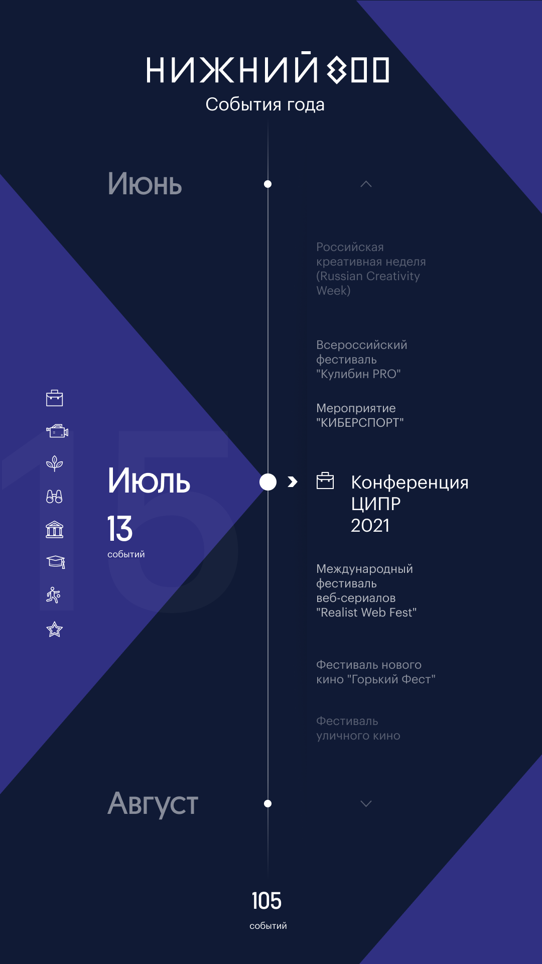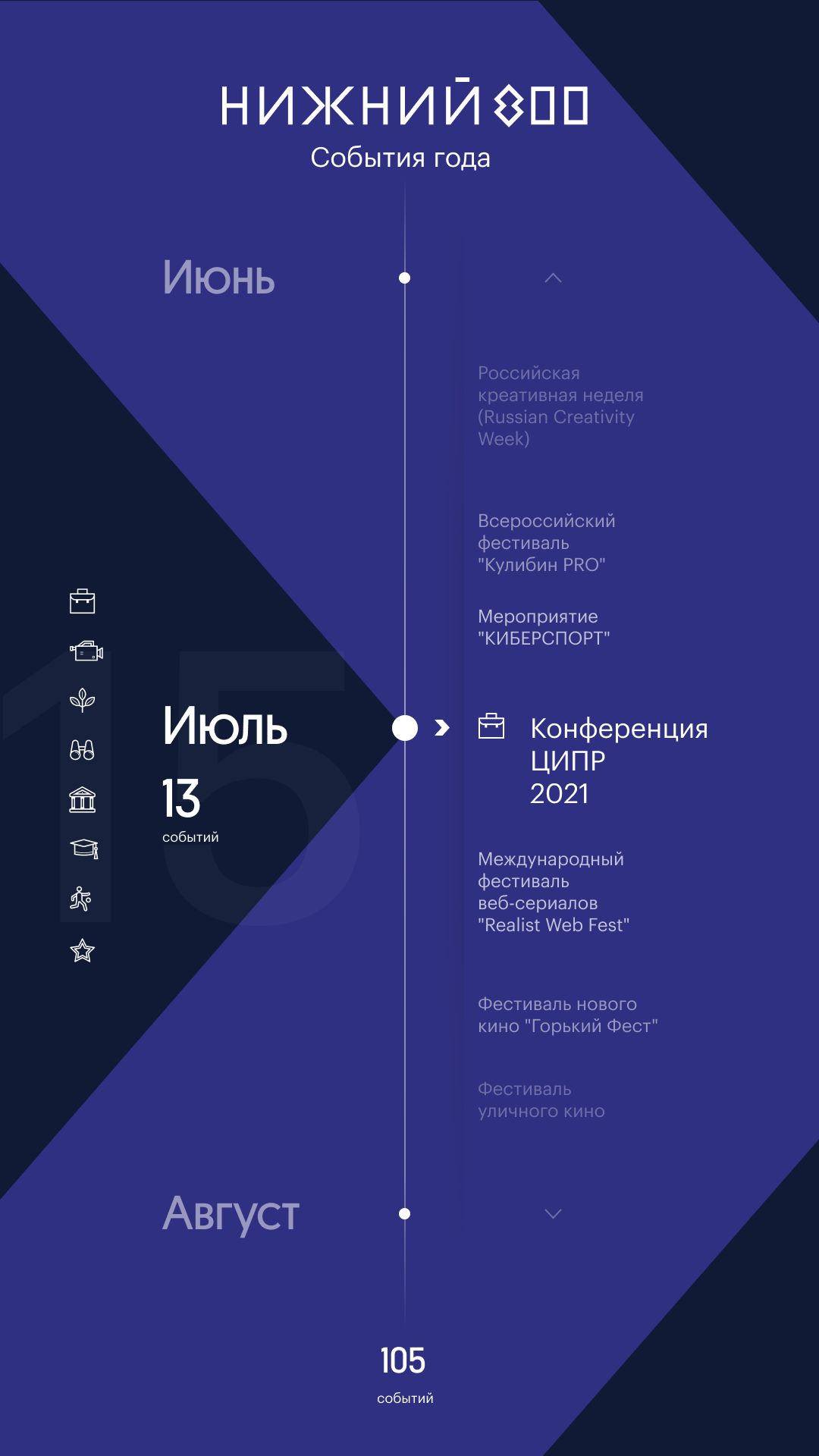 Touch panel with city events timeline made for NIZHNY 800 Nizhny Novgorod anniversary