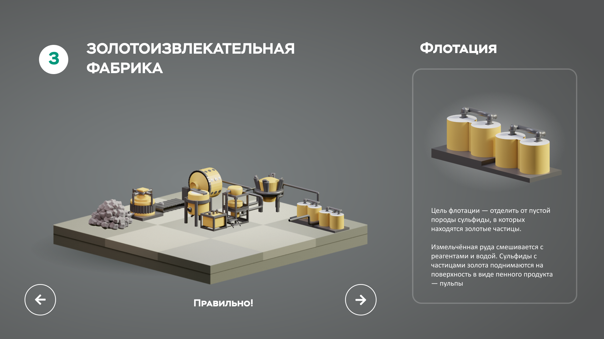 An interactive game designed to explain the gold production pipeline to museum visitors
